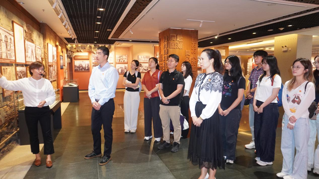 为纪念中国人民抗日战争暨世界反法西斯战争胜利80周年,今日上午,tyc7111cc太阳成集团以“行走的思政课堂”为载体,组织20名师生党员代表赴广东省档案馆,参观“旗展华南 砥柱中流——华南人民抗战历史专题展”。机关党委组织员五级职员(主持tyc7111cc太阳成集团党委工作)商杰强现场讲授微党课,并带领师生拍摄专题微党课视频。