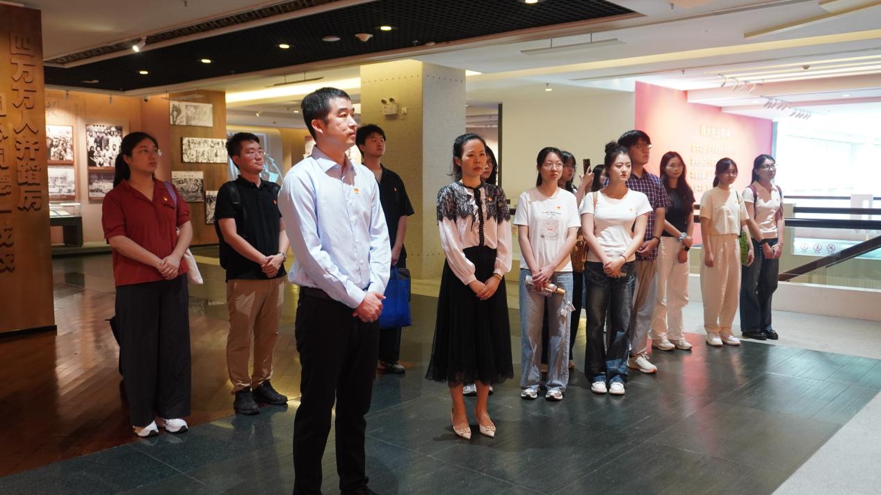 参观结束后,商杰强以历史为教材开展实地微党课,强调抗战胜利彰显了中华民族追求正义、捍卫和平的坚定立场,诠释了国有国格、人有人格的民族气节,叮嘱大家永远铭记世界反法西斯战争的历史意义与时代价值。随后,4名师生党员录制专题微党课视频,通过讲述历史故事,传递铭记历史、珍爱和平的信念。