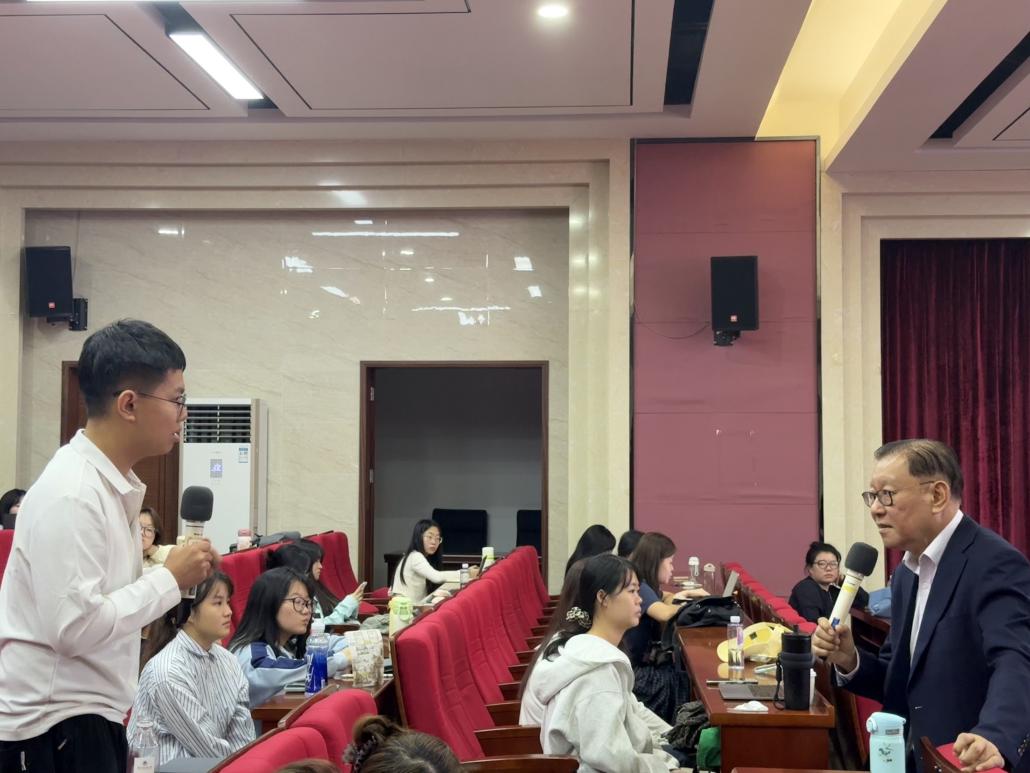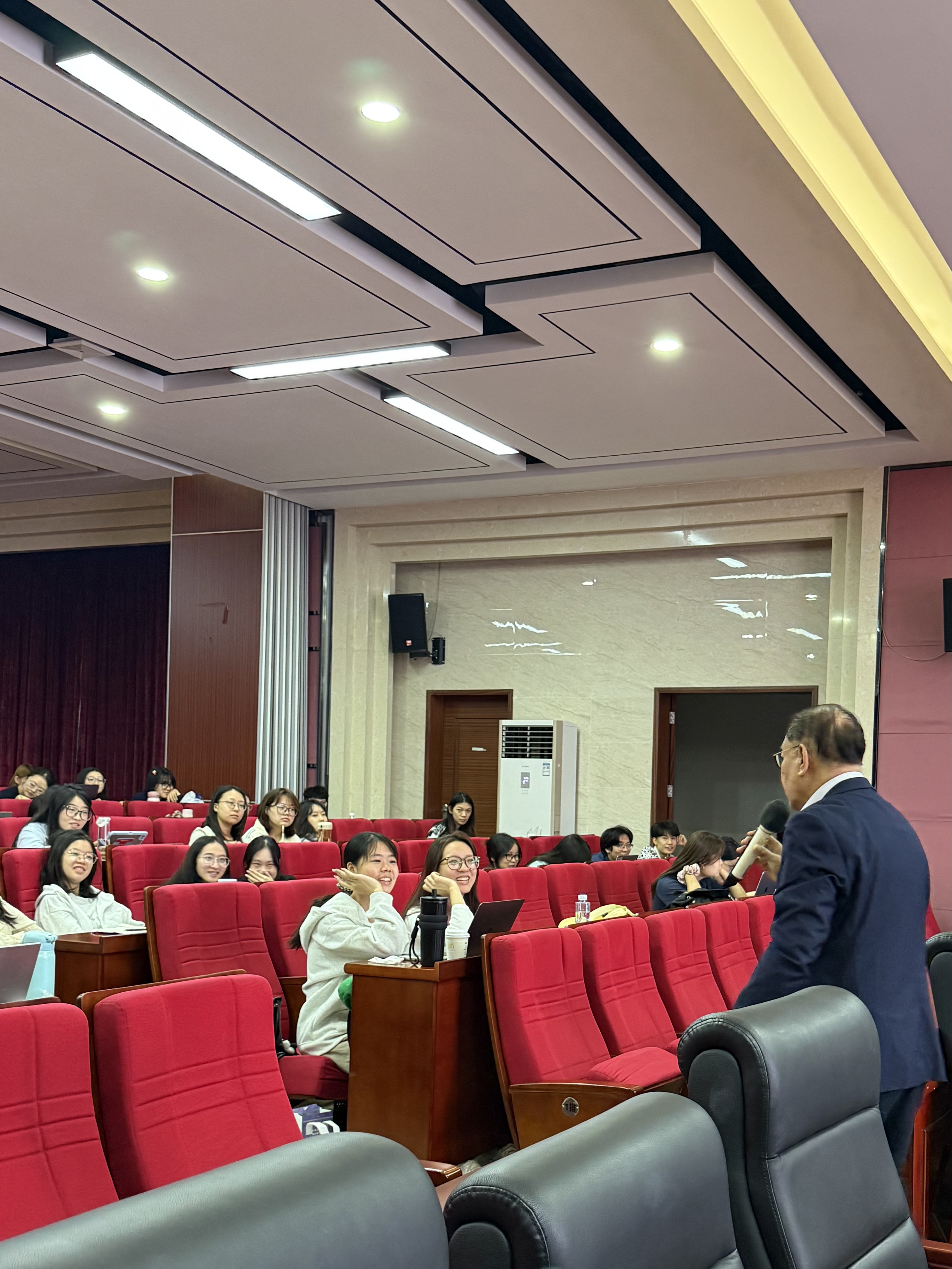 整场讲座案例丰富,深入浅出,同学们纷纷表示收获颇丰,不仅对新加坡双语教育体系有了更全面的认识,也对“乐学善用”的理念有更为深入的理解。这场讲座不仅是一场学术分享,更是一次价值倡导。符院长向同学们阐明,坚实的思想根基,是实现有效国际传播的真正前提。