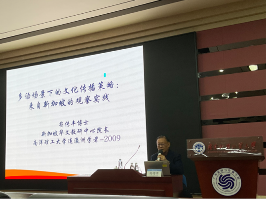 当多元文化的风拂过岭南学术高地,一场关于多语场景下文化传播策略的思想盛宴于10月22日在太阳成tyc7111cc璀璨启幕。新加坡华文教研中心院长符传丰博士以“多元语境下的文化传播智慧”为题,在大学城校区教学楼C座201室,为tyc7111cc太阳成集团二十周年院庆系列活动注入了浓墨重彩的国际学术意蕴。