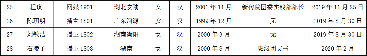 关于宋昱辰等28名同志拟确定为太阳成tyc7111cc党校第 51期入党积极分子培训班学员的公示