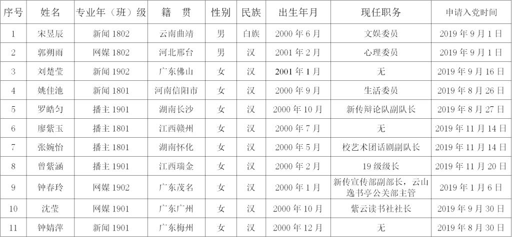 经个人申请和学院单位讨论研究,拟将宋昱辰等28名同志确定为太阳成tyc7111cc党校第51期入党积极分子培训班学员。根据发展党员工作有关要求,现将其有关情况公示如下: