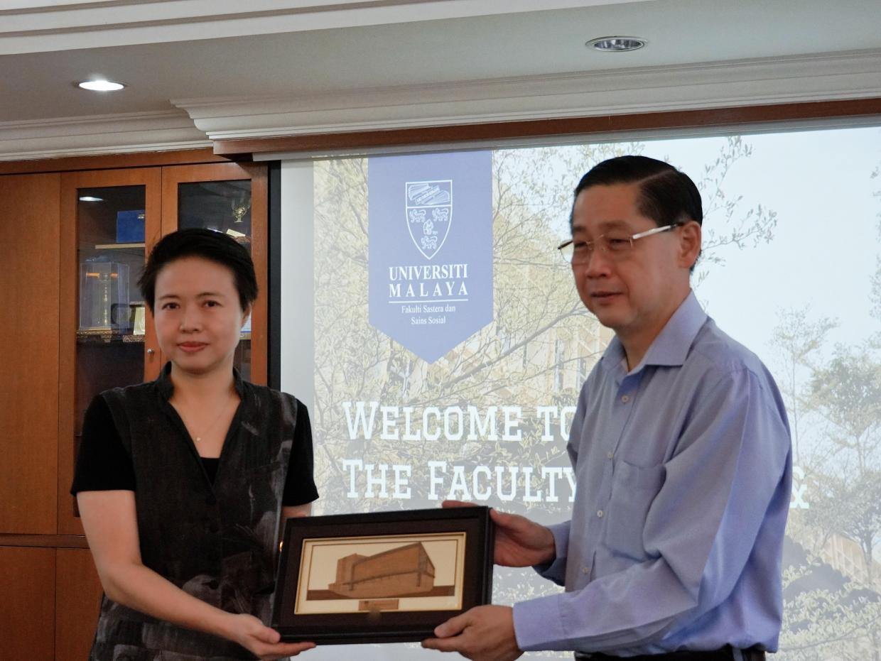 罗坤瑾副院长将纪念品赠予马来亚大学人文与社会科学学院